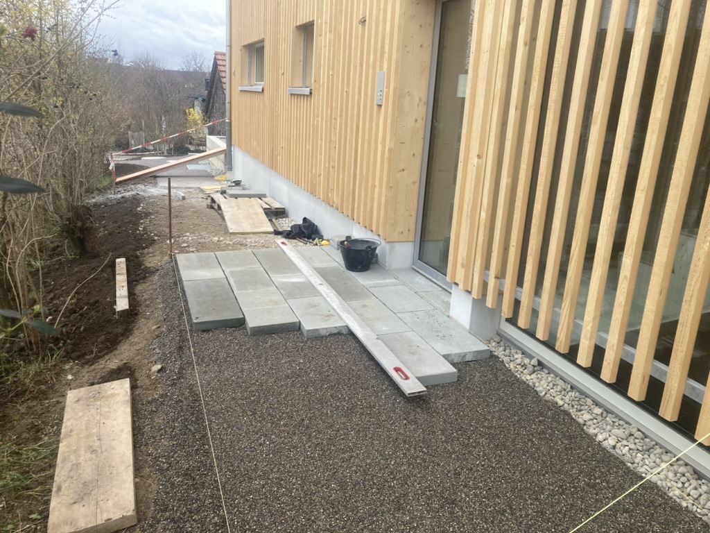 Die Bodenplatten werden in Splitt